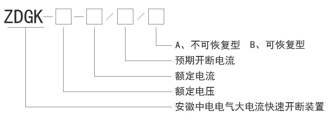 ZDGK大電流快速開斷裝置是一種具有超速開斷短路電流能力的開關(guān)裝置,能在極短時間內(nèi)把發(fā)生的故障的短路電流在1/4T之前,未達到第一個峰值前開始動作限流,在半個周波時間內(nèi)將短路電流安全斷開,從而起到限制短路電流,保護電力設(shè)備的作用。裝置分為可恢復(fù)型與不可恢復(fù)型兩種。符號表示為:
